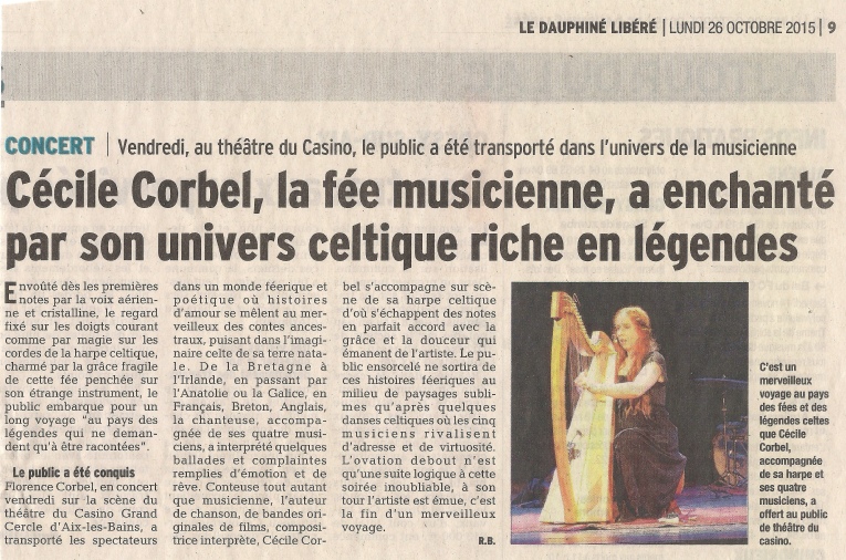 - Article qui revient sur le concert de Cécile Corbel au Théâtre du Grand Casino à Aix-Les-Bains le 23 octobre 2015.